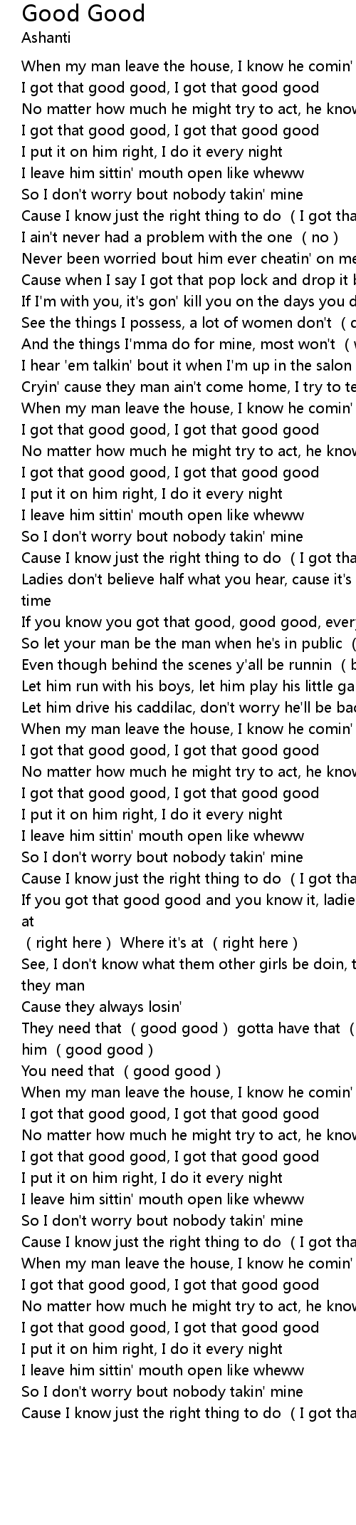 | [02:29.34] | They need that good good gotta have that good good to keep him good good |