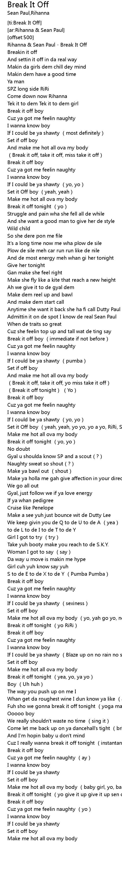 | [00:00.00] | Rihanna & Sean Paul - Break It Off |