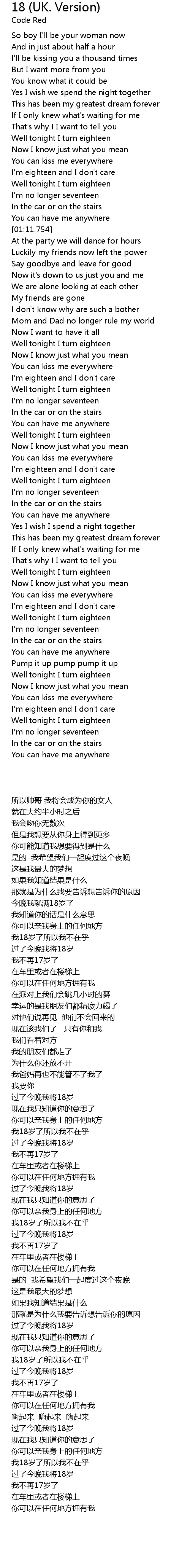 Well tonight I turn eighteen |