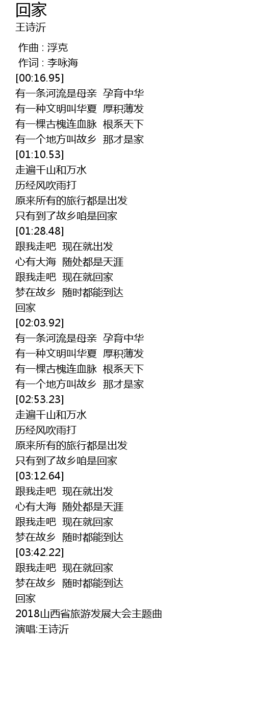 | [04:05.66] | 2018山西省旅游发展大会主题曲 |
