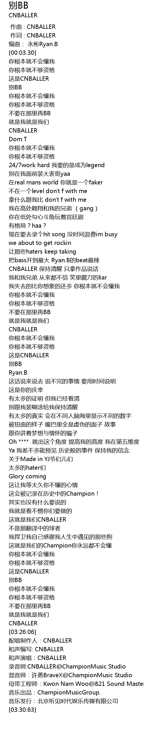 | [03:26.74] | 配唱制作人:CNBALLER |