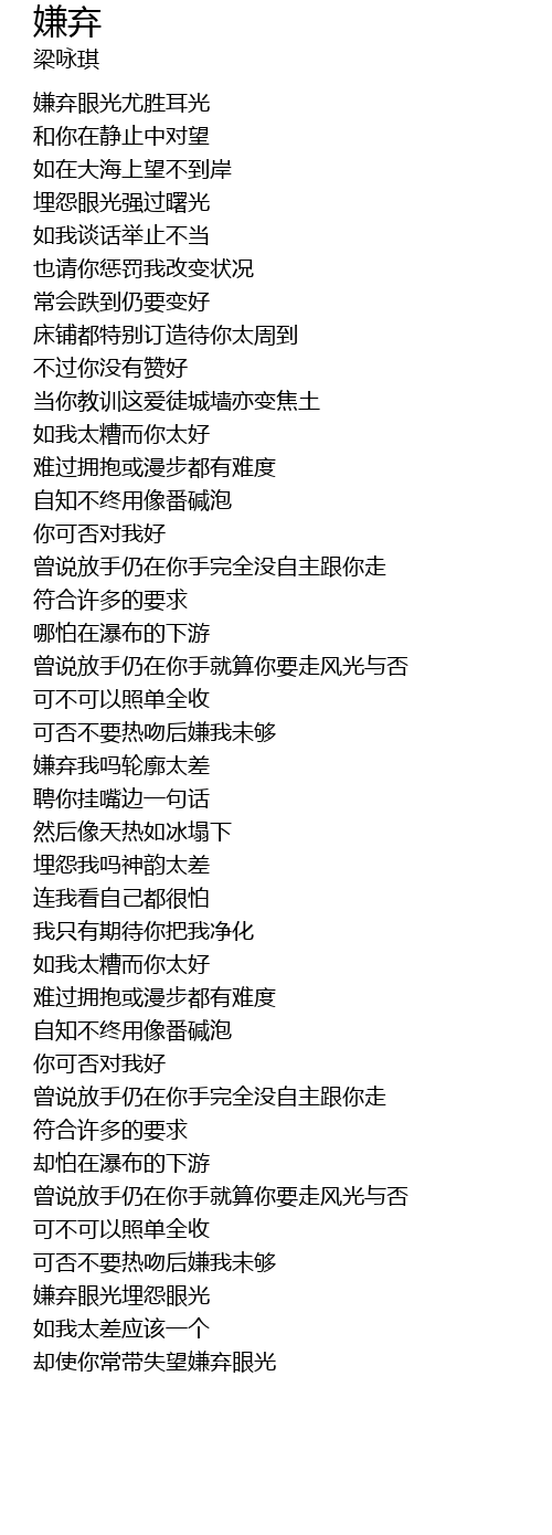 | [03:06.44] | 却使你常带失望嫌弃眼光 |