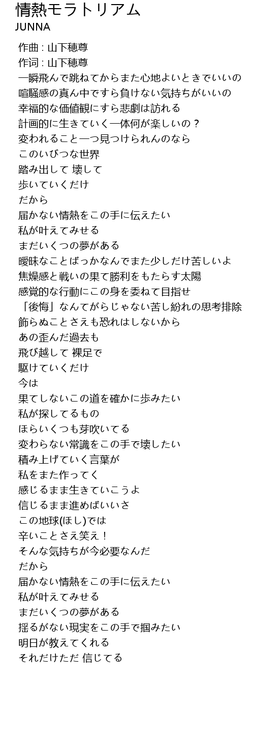 | [01:10.696] | 焦燥感と戦いの果て勝利をもたらす太陽 |