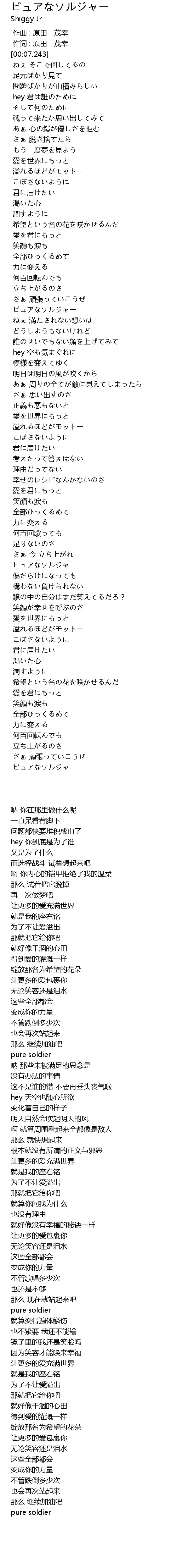 | [03:01.959] | ピュアなソルジャー |