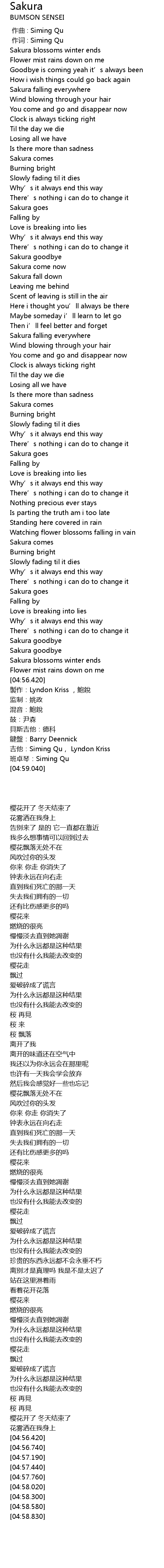 | [04:58.580] | 吉他:Siming Qu, Lyndon Kriss |