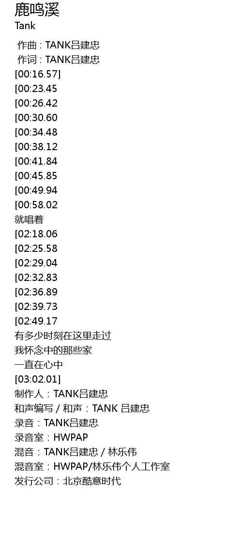 | [03:40.45] | 制作人:TANK吕建忠 |