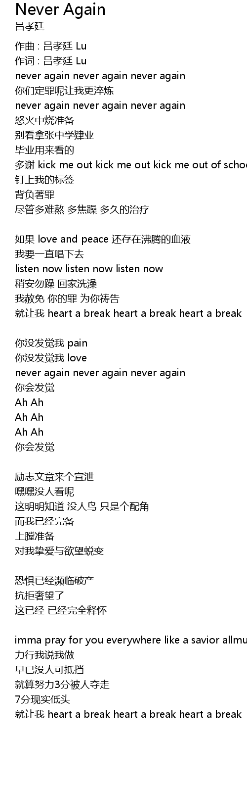 | jiù ràng wǒ heart a break heart a break heart a break | |