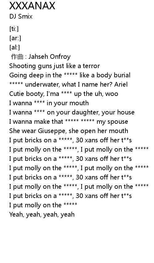 | [00:38.99] | I put bricks on a *****, 30 xans off her t**s |