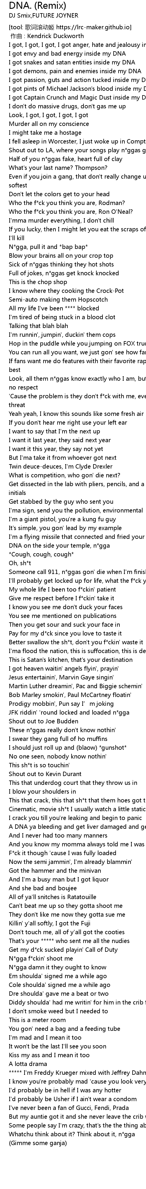 | [01:52.106] | DNA on the side your temple, n*gga |
