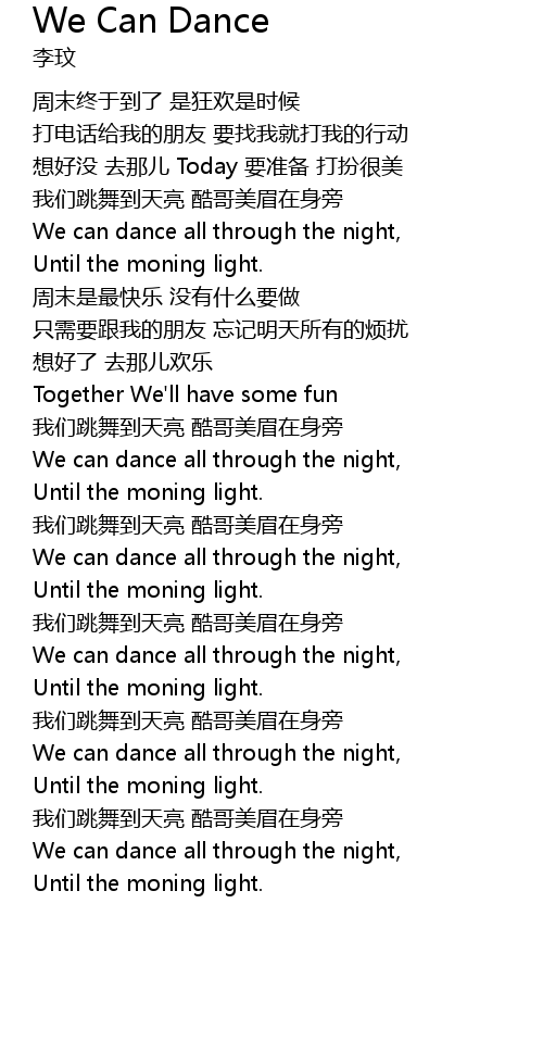 | [03:20.23] | 我们跳舞到天亮 酷哥美眉在身旁 |