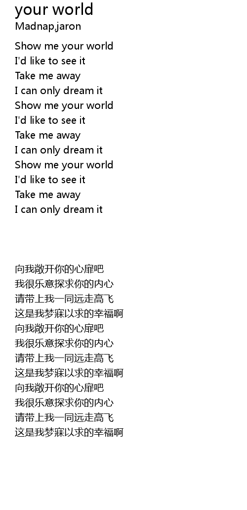 | [00:13.05] | Show me your world |