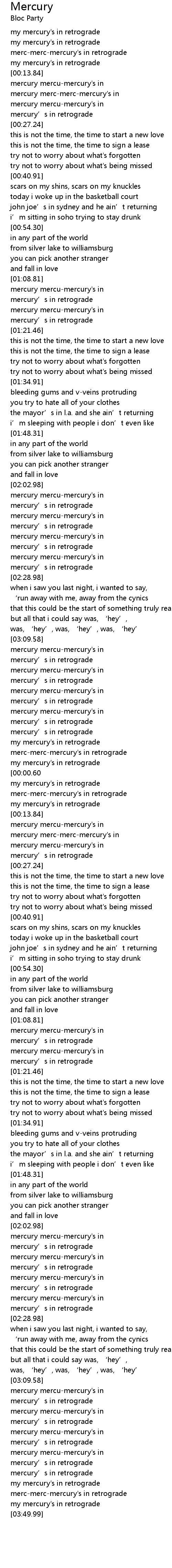| [03:43.32] | mercmercmercury' s in retrograde |