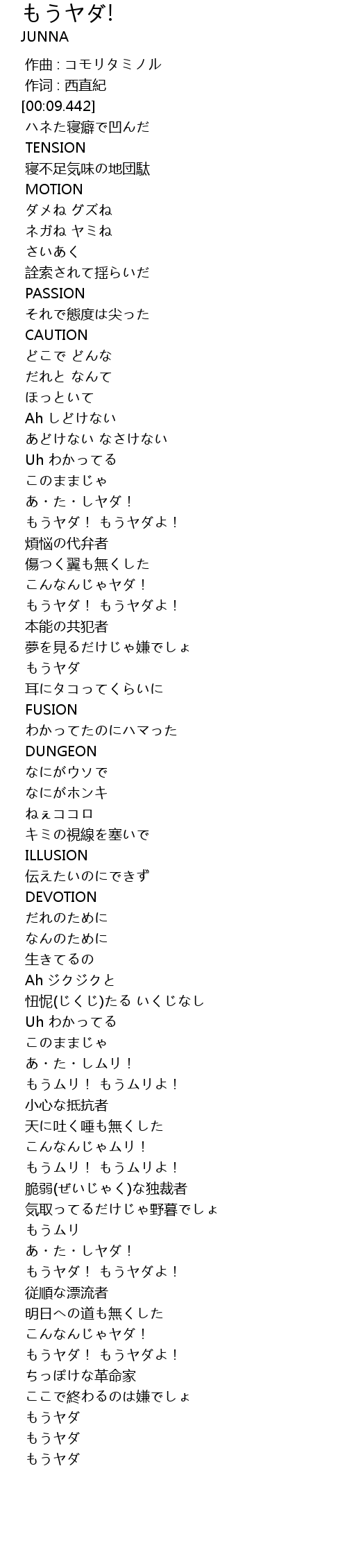 | [03:17.408] | もうヤダ! もうヤダよ! |