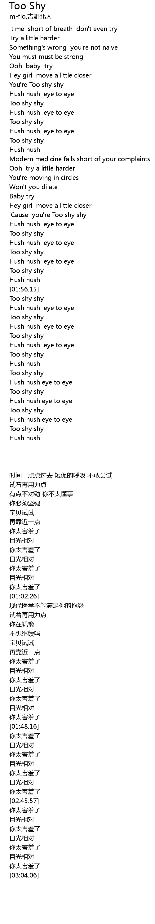 | [03:01.66] | Too shy shy |