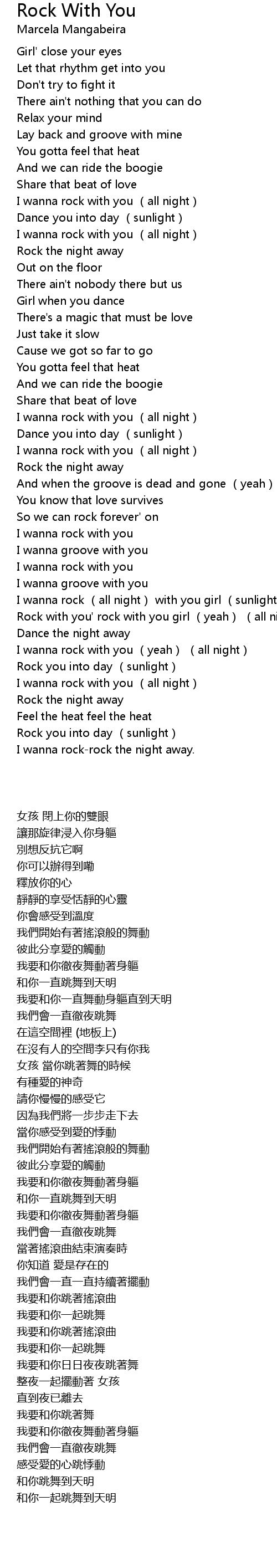 | [02:57.600] | Rock with you' rock with you girl yeah all night |