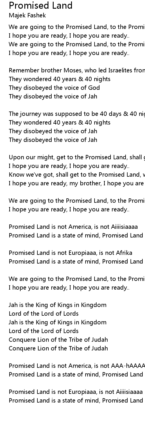 Upon our might, get to the Promised Land, shall get to the Promised Land |