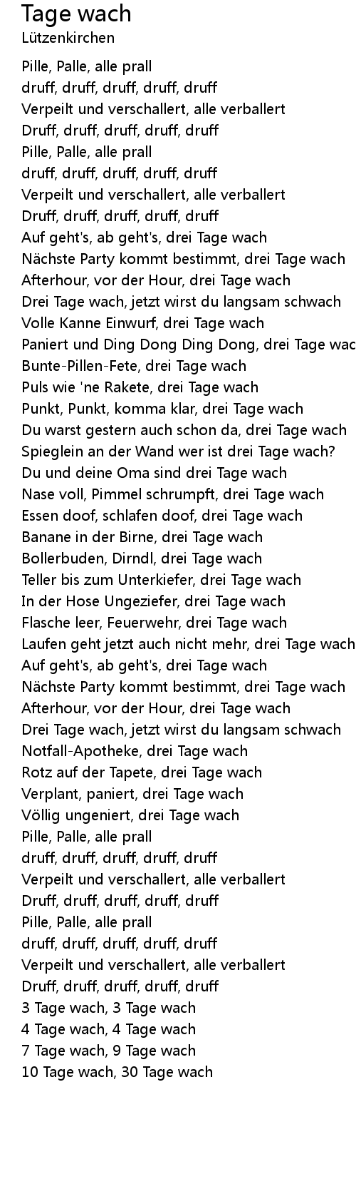 | Song | Tage wach |