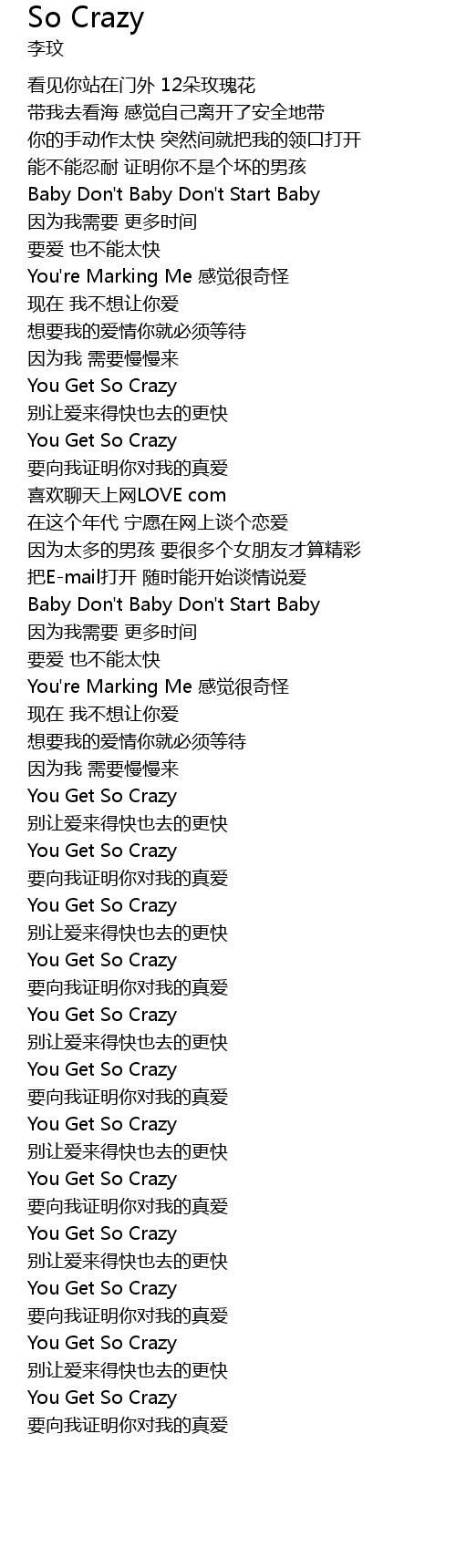 | [00:59.110] | Baby Don't Baby Don't Start Baby |