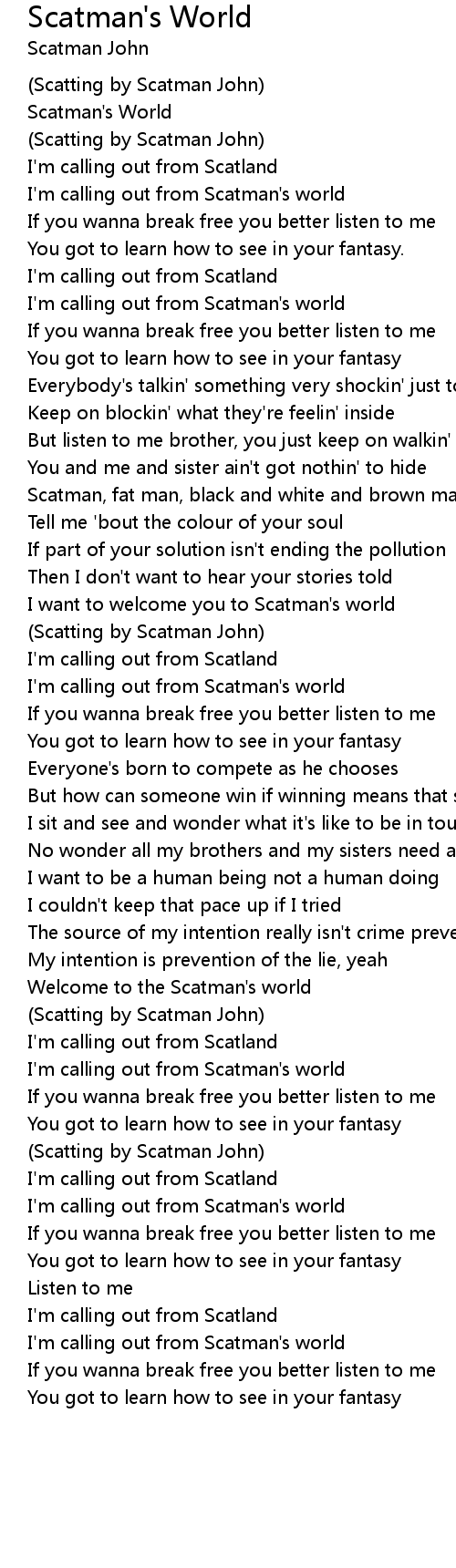 I'm calling out from Scatman's world |