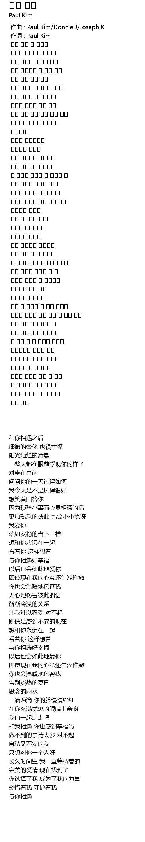 | [00:00.705] | 作词 : Paul Kim |