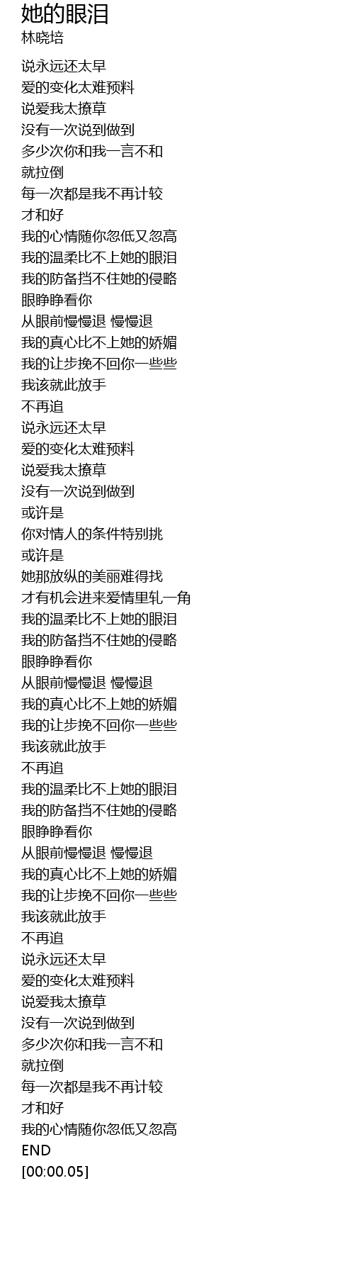 | [00:56] | 我的温柔比不上她的眼泪 |