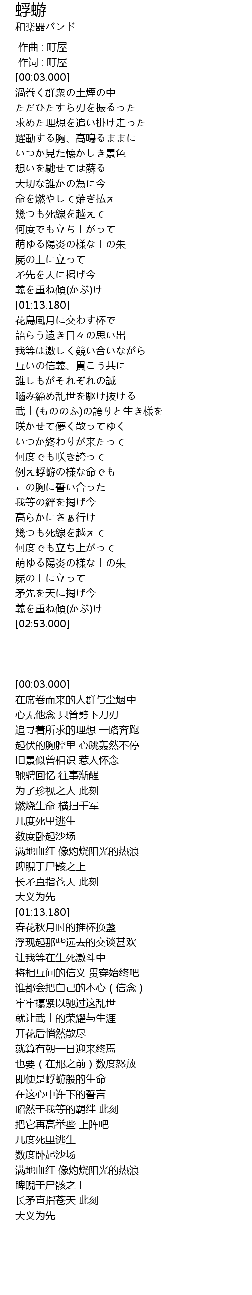 | [02:15.800] | 例え蜉蝣の様な命でも |