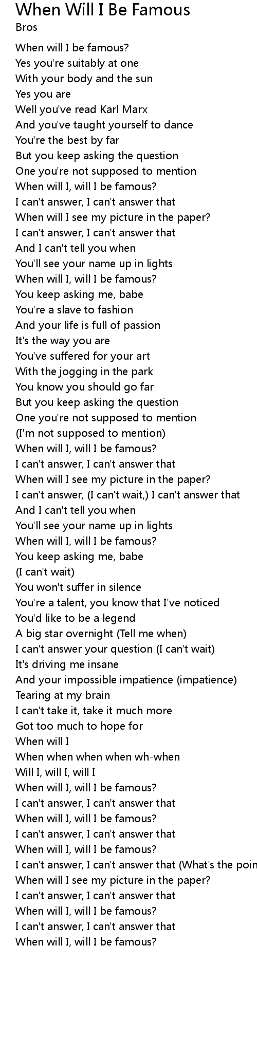 When will I, will I be famous? |