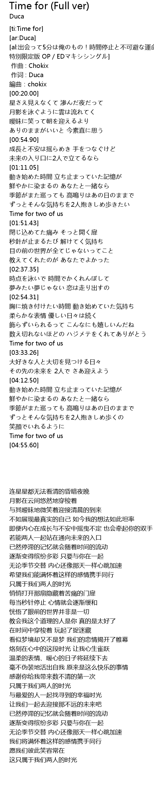 | [01:12.63] | dòng shǐ shí jiān lì zhǐ jì yì |