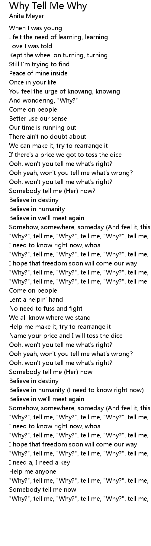 "Why?", tell me, "Why?", tell me, "Why?", tell me, "Why?", tell me, "Why?", tell me, "Why?", tell me, "Why?", tell me |