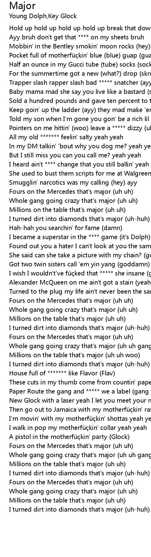 | [02:36.77] | Fours on the Mercedes that's major (uh uh) |