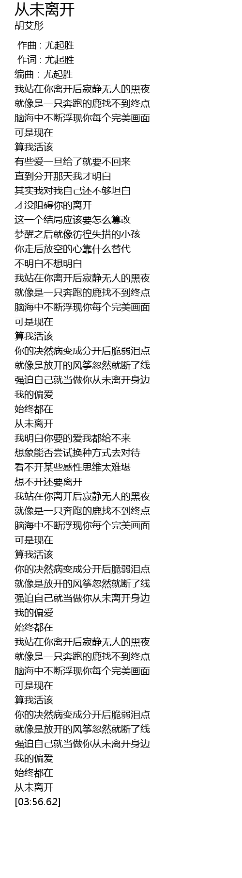 | [03:34.70] | 你的决然病变成分开后脆弱泪点 |