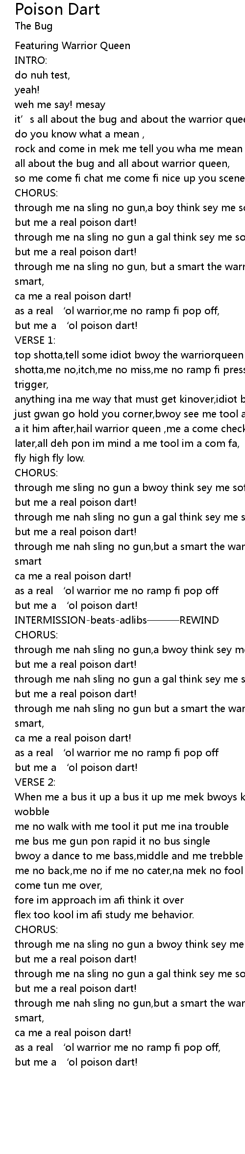 | through me sling no gun a bwoy think sey me soft | |