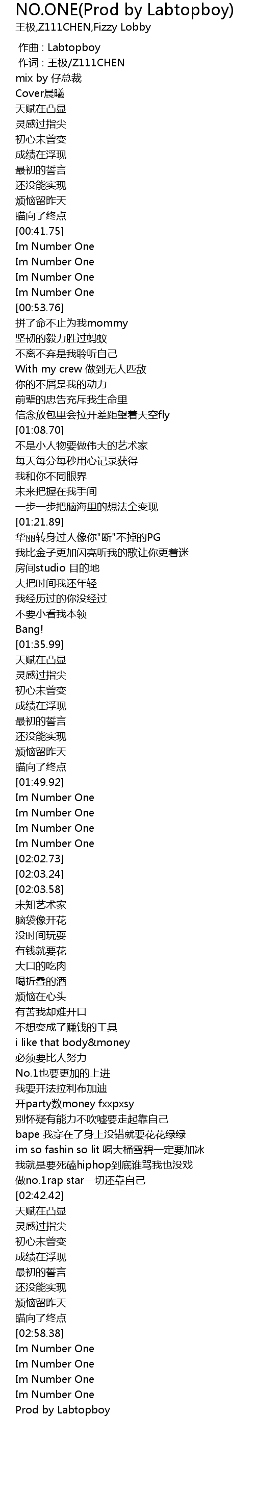 | [03:13.66] | Prod by Labtopboy |