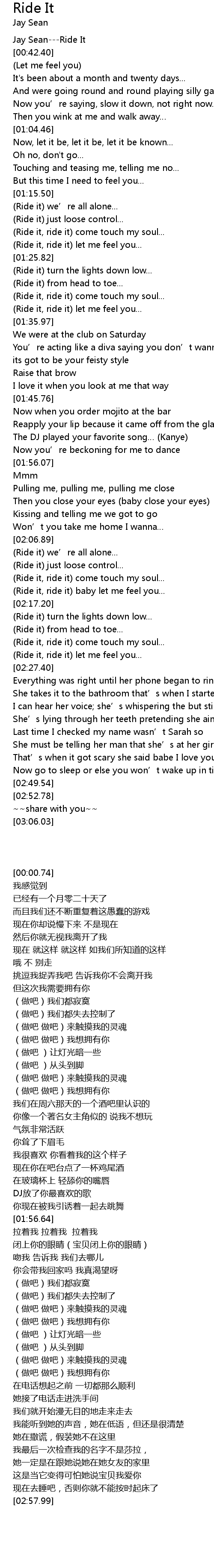 | [00:00.74] | Jay Sean---Ride It |