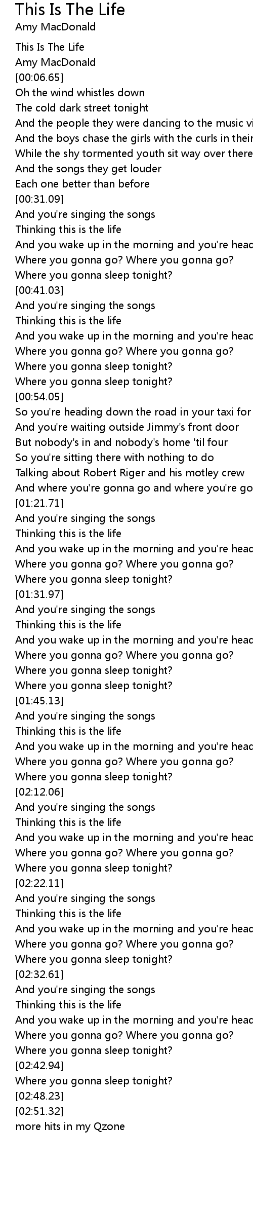 And where you're gonna go and where you're gonna sleep tonight |