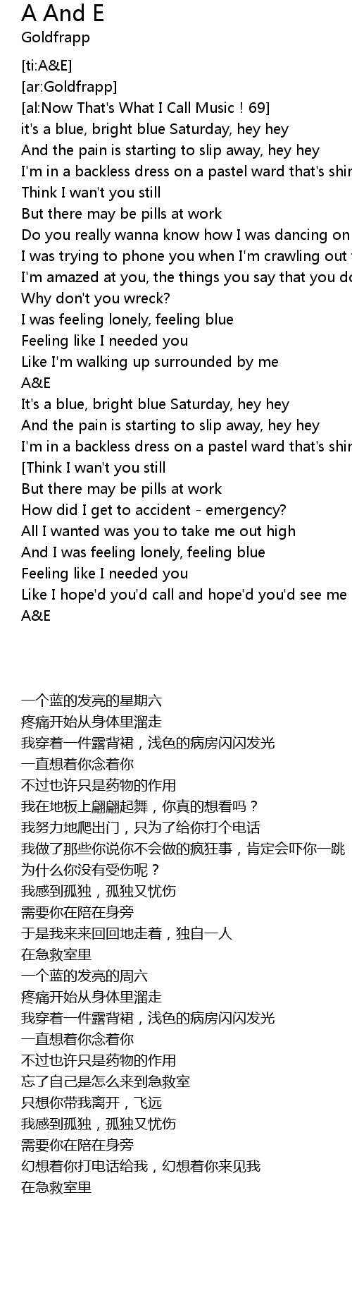 | [00:08.38] | it's a blue, bright blue Saturday, hey hey |