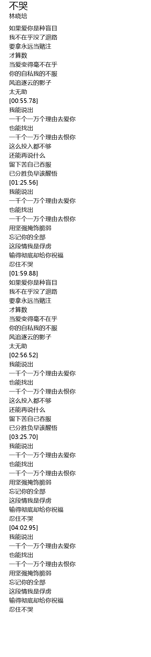 | [01:55.54] | 忍住不哭 |