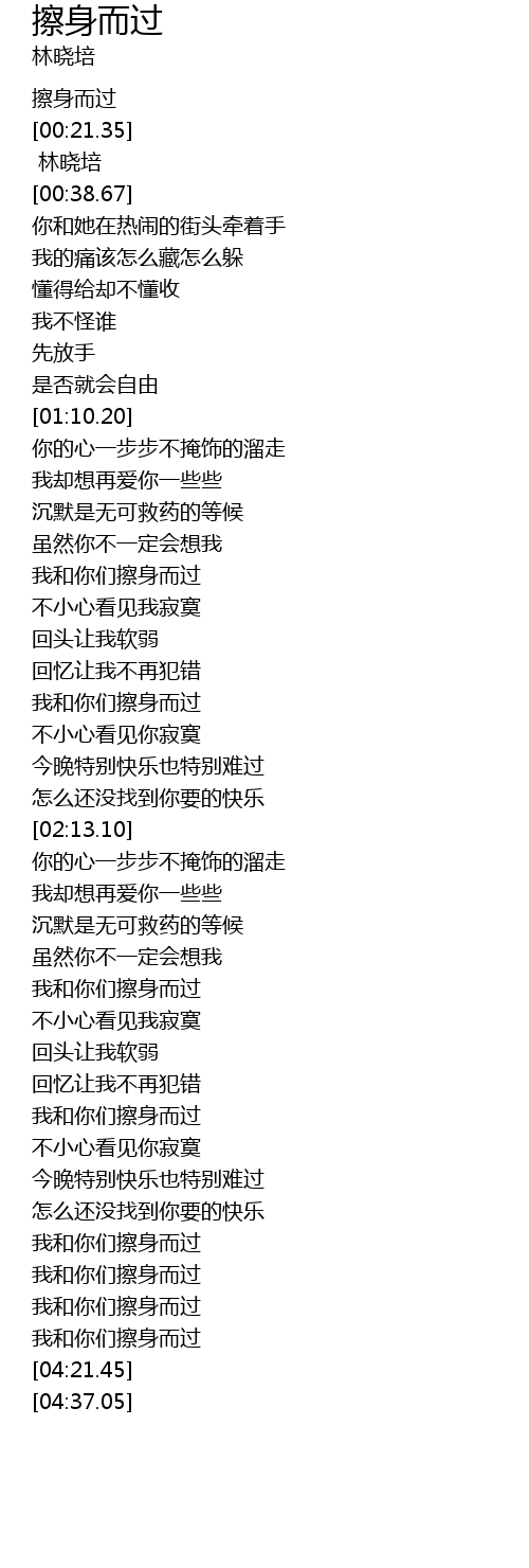 | [00:55.22] | 我的痛该怎么藏怎么躲 |