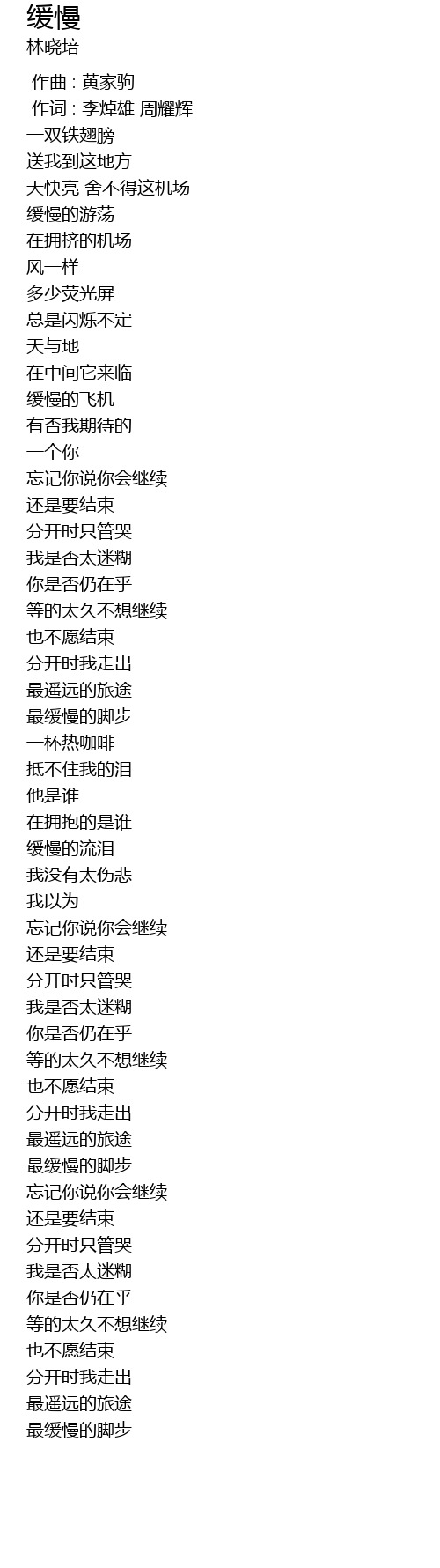 | [00:01.00] | 作词 : 李焯雄 周耀辉 |