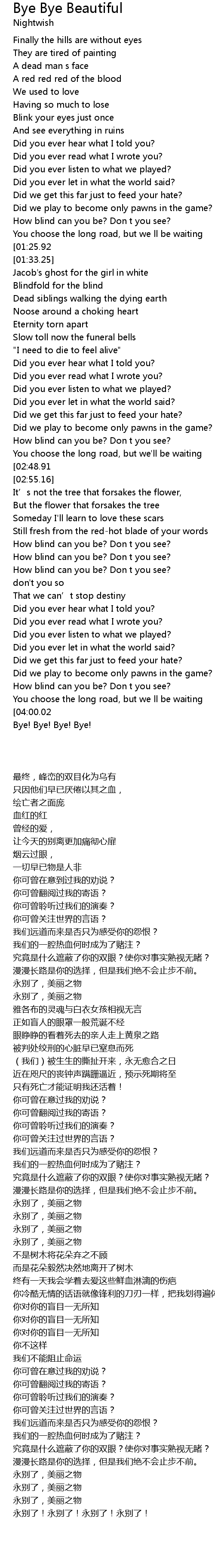 | [02:52.19][02:48.91][02:45.74][02:42.52] | Bye bye beautiful! |