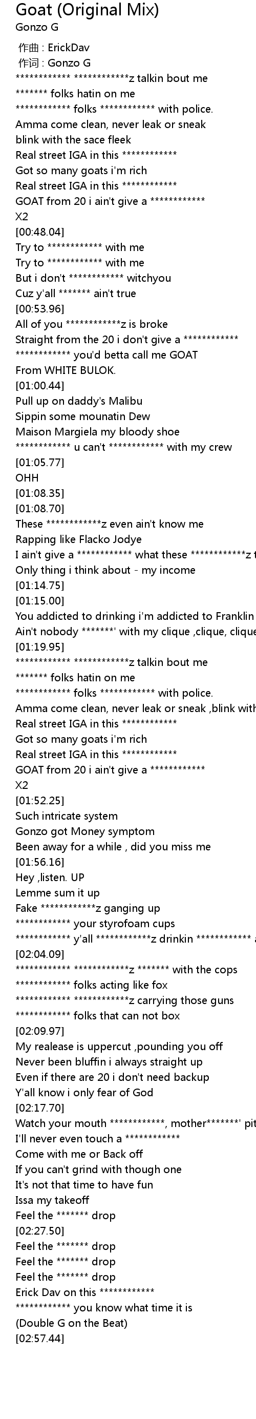 | [00:57.76] | ************ you'd betta call me GOAT |