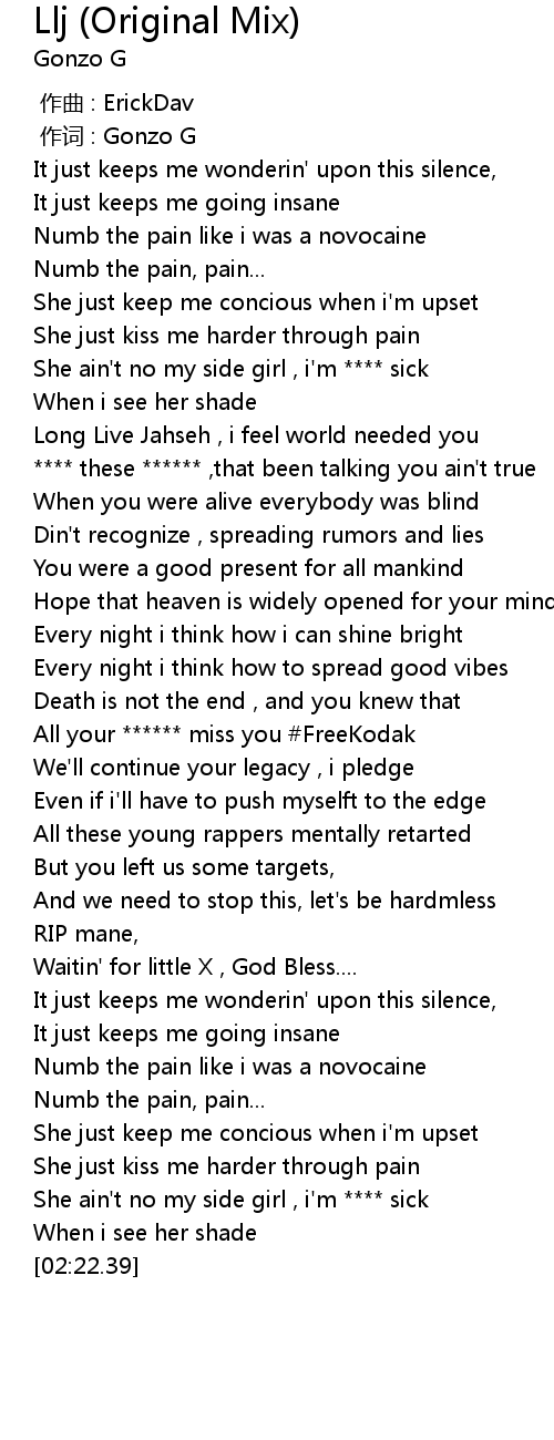 | [01:23.37] | All your ****** miss you #FreeKodak |