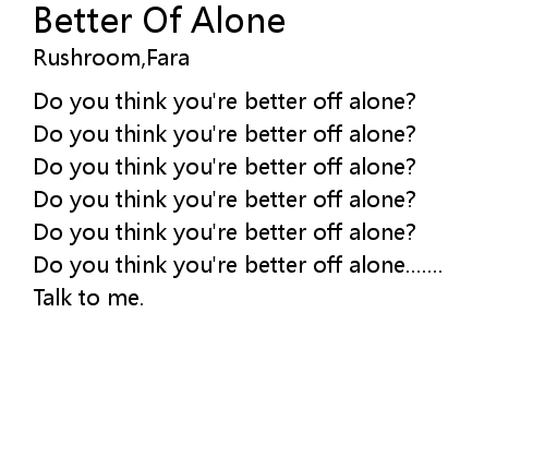 | [00:22] | Do you think you're better off alone? |