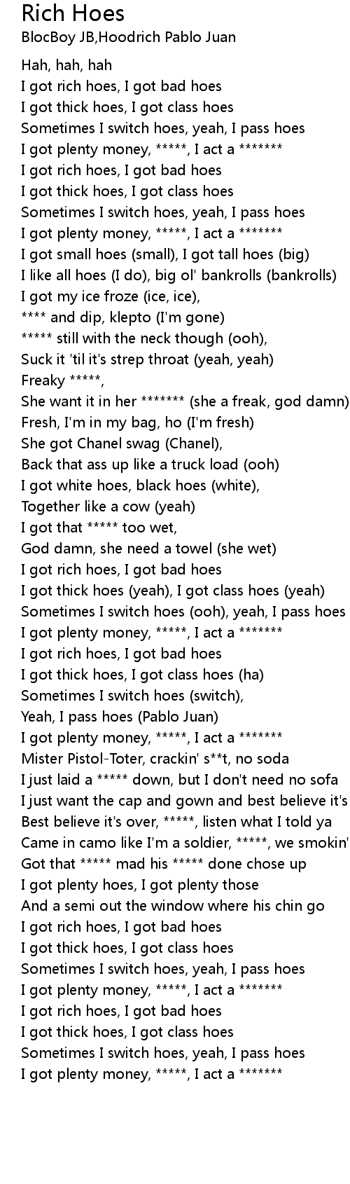 I got rich hoes, I got bad hoes |