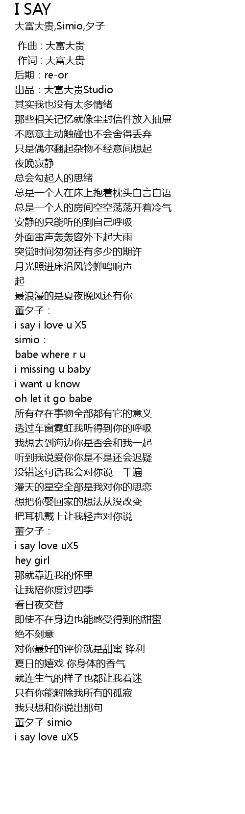 | [00:01.000] | 作词 : 大富大贵 |