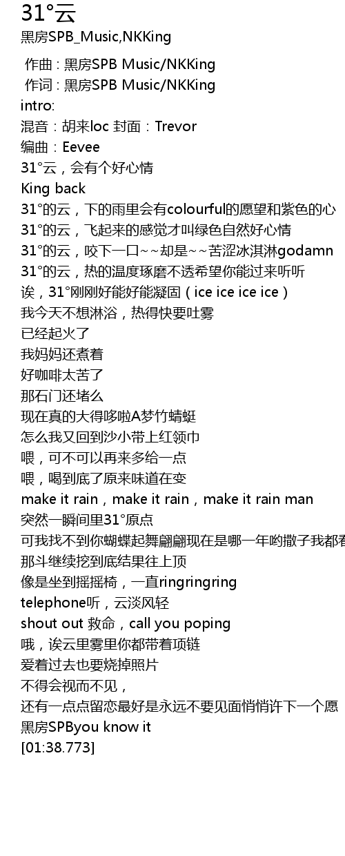 | [00:00.066] | 作词 : 黑房SPB Music/NKKing |