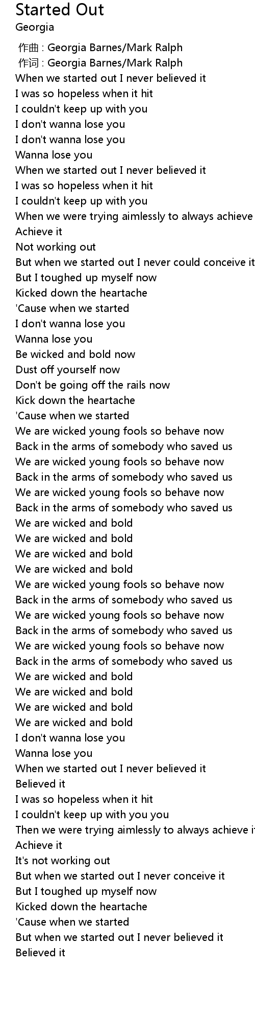 | [00:01.000] | 作词 : Georgia Barnes/Mark Ralph |