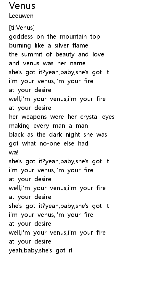 | [01:33.525] | i'm your venus,i'm your fire |