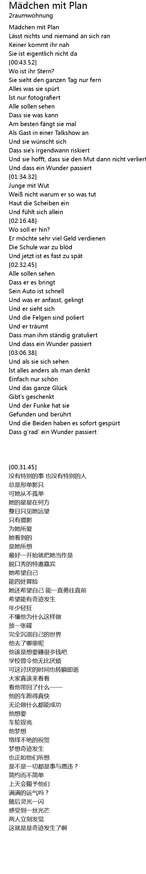 | [00:31.45] | Mädchen mit Plan |