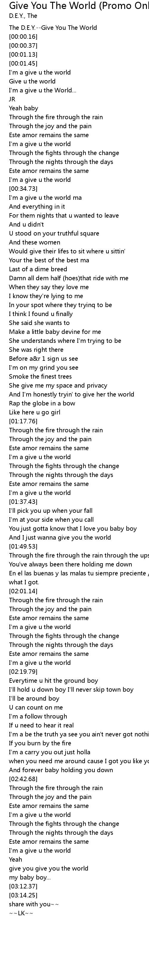 The D.E.Y.--Give You The World |